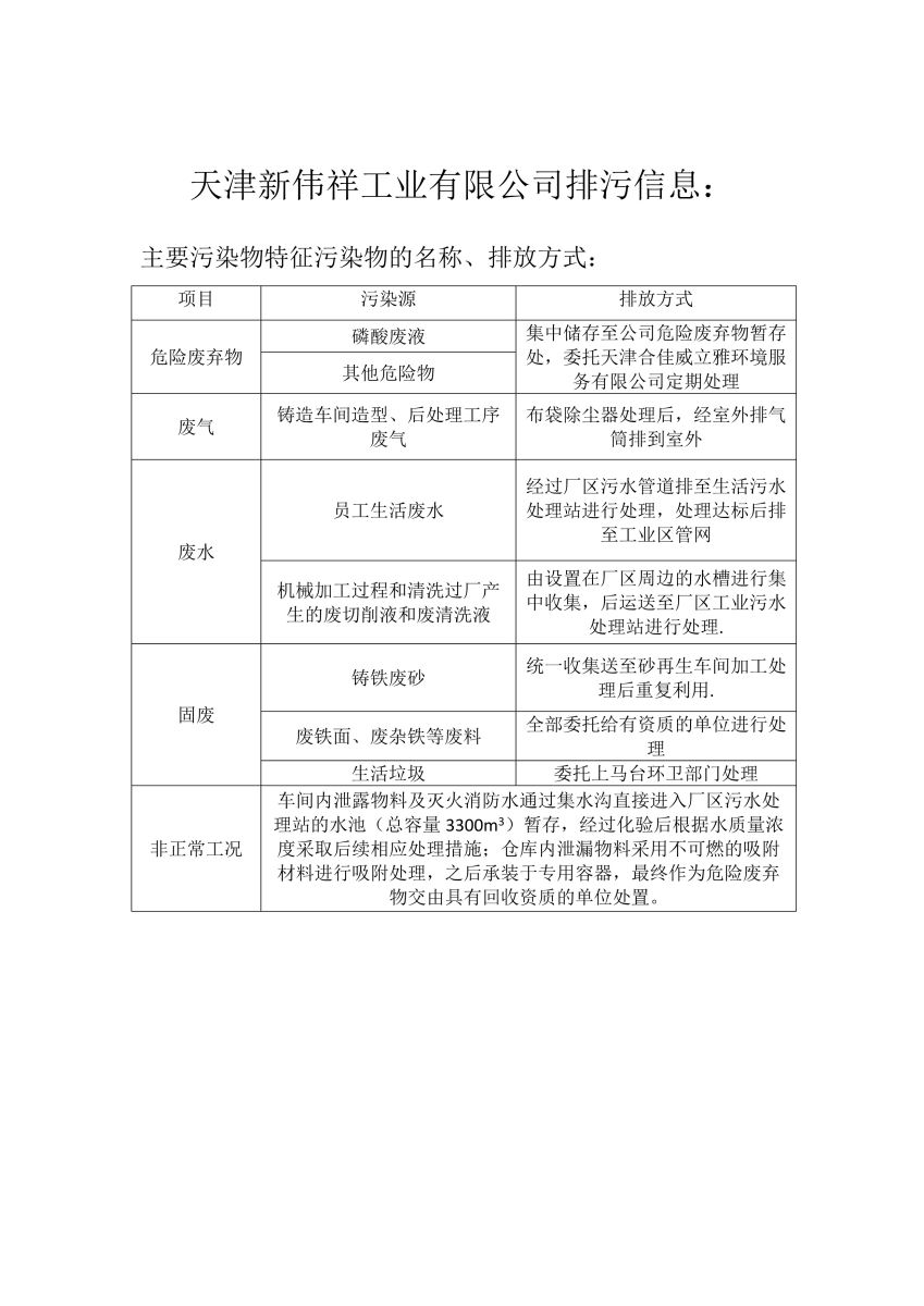 天津新偉祥工業(yè)有限公司危廢信息公開